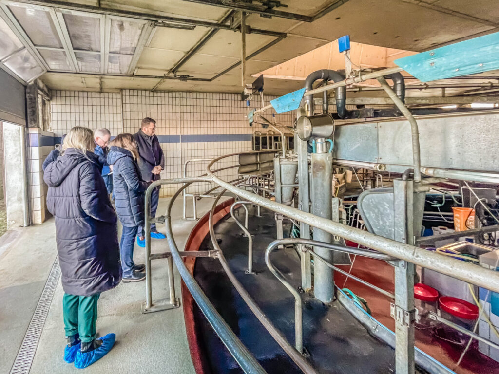 In der Milchproduktion wird derzeit noch zweimal täglich im Melkkarussell gemolken. Dieses System soll in naher Zukunft abgelöst werden: Geplant ist die Umstellung auf vollautomatische Melkroboter, um Arbeitsabläufe weiter zu optimieren und gleichzeitig den Tierkomfort zu erhöhen.