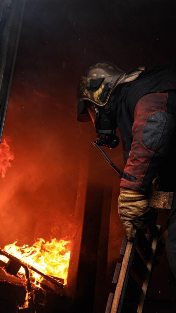Die Brände wurden mit festen Brennstoffen entfacht, vor allem mit Holzpaletten. Dadurch entstehen Hitze, Flammenbild und Rauchverhalten, die einem echten Wohnungsbrand sehr nahekommen. Für die Teilnehmer bedeutet das: Arbeiten unter Atemschutz, eingeschränkte Sicht, hohe Temperaturen – und Entscheidungen, die schnell und sicher getroffen werden müssen.