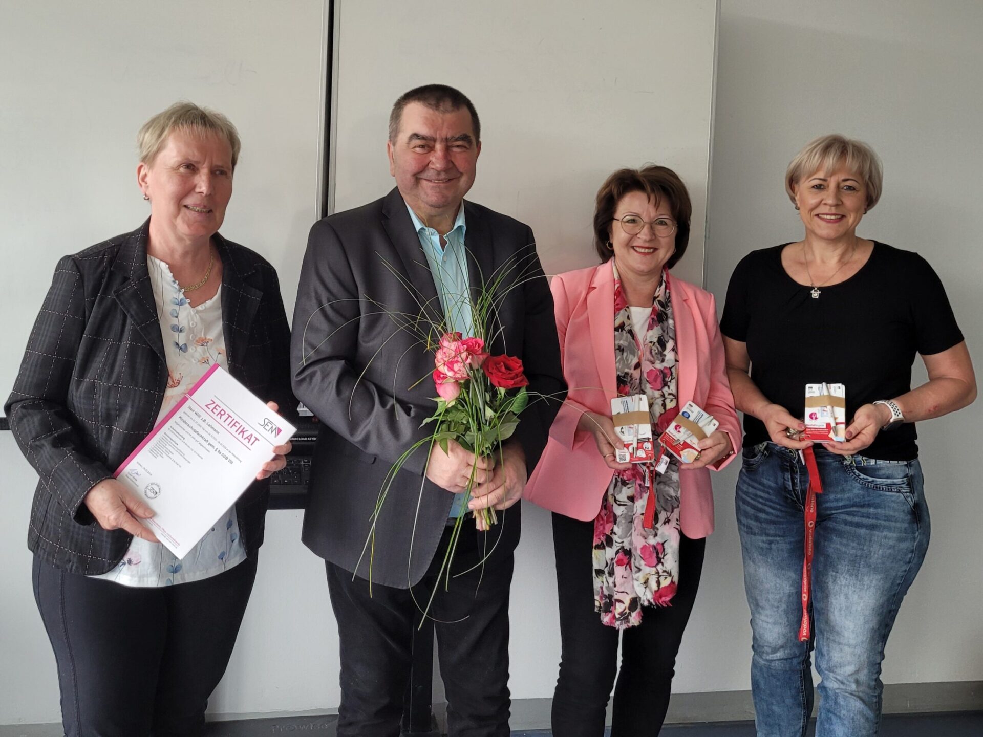 Hier konnten nun stolz die Zertifikate an die Teilnehmenden übergeben wurden. Die Ausbildung zur Kinderschutzfachkraft ist von entscheidender Bedeutung für den Schutz und das Wohl von Kindern in unserer Gesellschaft. Durch die Übernahme der Finanzierung durch den Landkreis wird sichergestellt, dass mehr Fachkräfte in diesem Bereich ausgebildet werden können, um frühzeitig mögliche Risiken für Kinder zu erkennen und angemessen darauf zu reagieren.